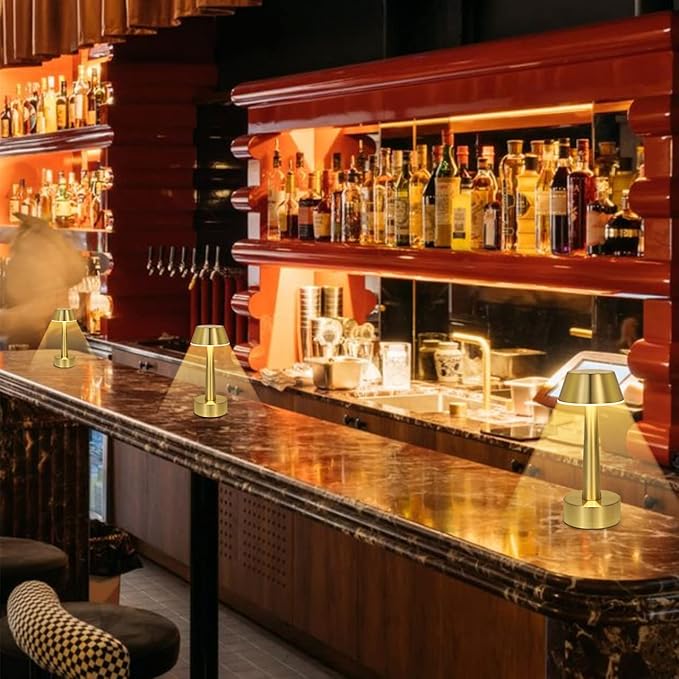 • 【Portable Aluminum Alloy Metal Lamp】Metal aluminum alloy body, non-slip design at the bottom, gorgeous and elegant gold, acrylic diffusion panel, delivers soft, steady light to light you home, create a romantic and warm atmosphere. Ideal for restaurant, bar, bistro, cafe, dining room, living room, candlelight dinner, patio table, centerpiece decor, resort, office, home, house decoration