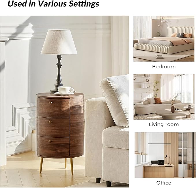 • AMPLE STORAGE SPACE - The diameter of the round end table is 15.7 inches, which provides enough space for resting phones, drinks, snacks or magazines. The 3 drawers also offer additional hidden storage for you.