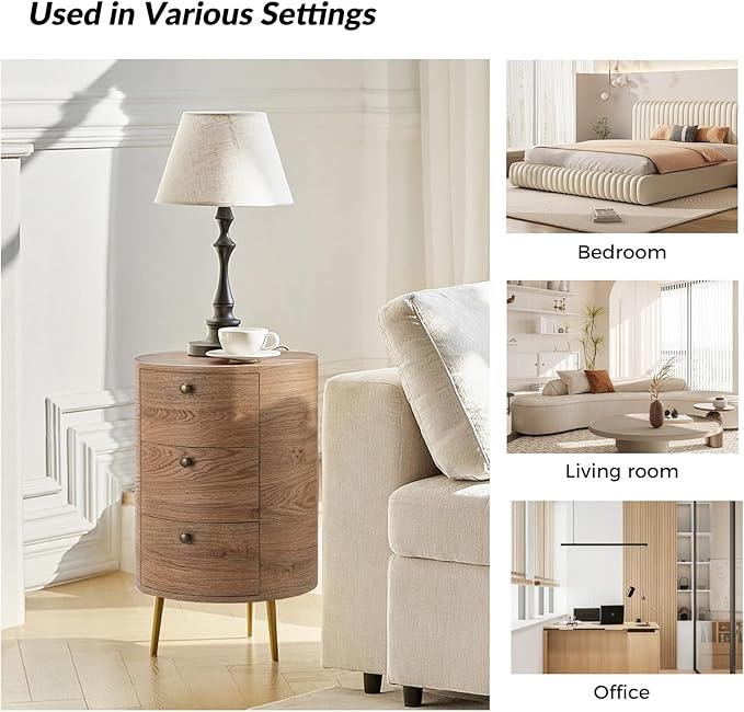 • AMPLE STORAGE SPACE - The diameter of the round end table is 15.7 inches, which provides enough space for resting phones, drinks, snacks or magazines. The 3 drawers also offer additional hidden storage for you.