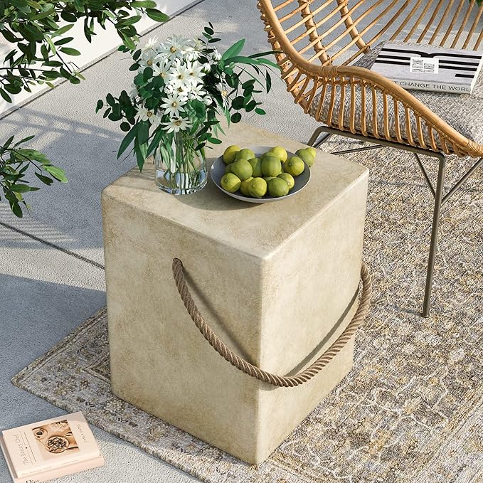 • ✅[Exquisite details] There are hemp rope handles on both sides of the outdoor end table, which can be easily picked up and moved.It does not need to be assembled, you just need to put your delicate vase or anything else on it, and you can start enjoying it directly.
