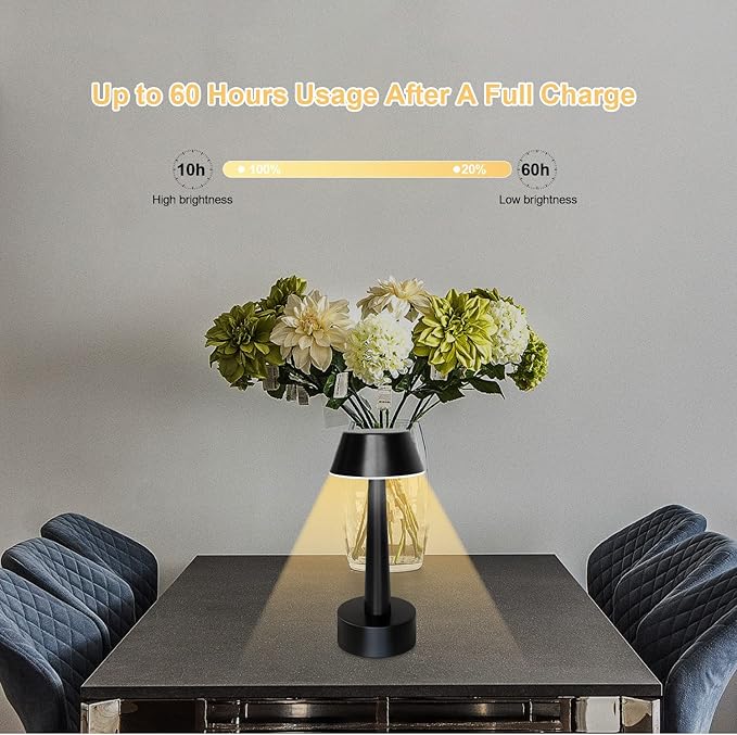 • 【Cordless Design】This cordless lamp is a rechargeable battery powered, it works whether plugged in or not, so you can place it on anywhere you want. Built-in battery allowing up to 10~60 hours usage after a full charge