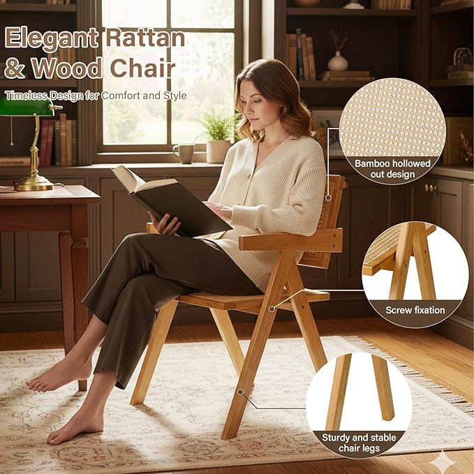 • 【Elegant and Stylish】: Dining chairs are crafted with a bamboo frame and hand-woven rattan, ensuring durability and a natural, organic look. Chairs bring a classical modern feel to any room, with their unique blend of traditional and contemporary design elements.