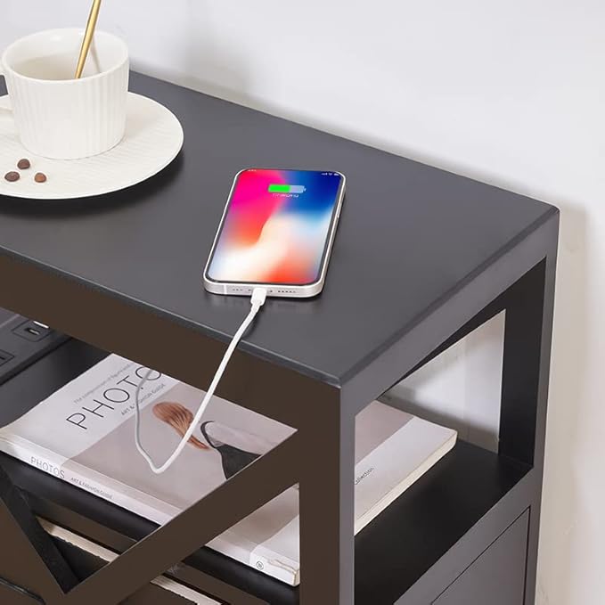 • 【Elegant Style and Powerful Function】The charging station is ingeniously designed on the open shelf of the pre assembled narrow side table, which will prevent water or drink on the tabletop from accidentally spilling onto it, which greatly improves the safety, and it has a great look.