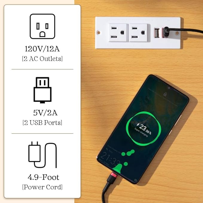 • Smart Charging Design: This End table has built-in charging station that contains 2 standard outlets and 2 USB ports to easily charge your phone and tablet simultaneously. No more need to search for lost chargers and untangle messy cables