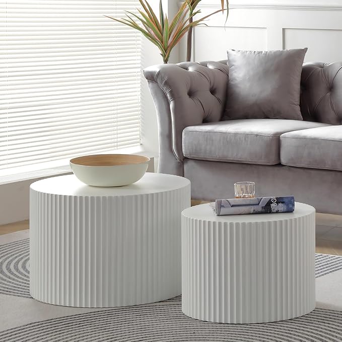 • 👑【Nesting Tables for Living Room】Our nesting sets consists of one Coffee table (Φ 23.62x H 15.75 inch) and one Side table (Ø 18.9x H 13.78 inch). You could slide the small one into the big one when you wanted more space. You can be arranged in multiple ways,using them as coffee table, end table or side table