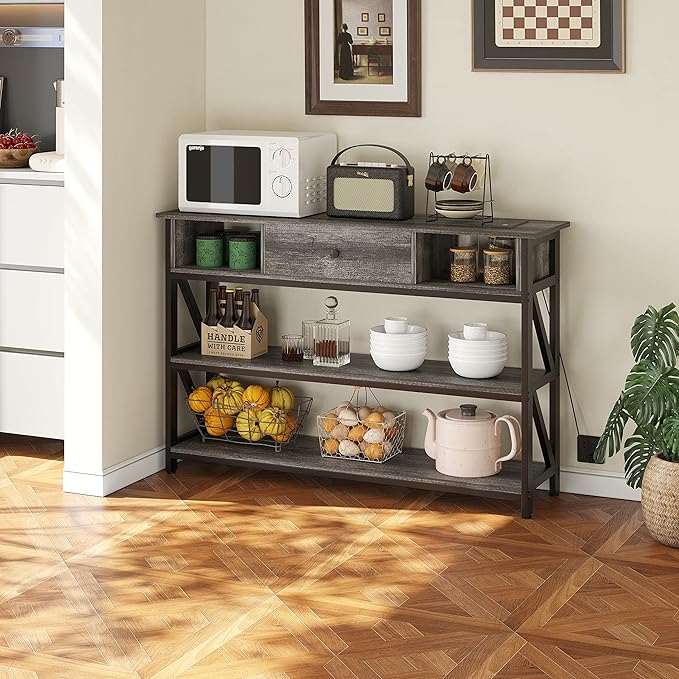 Mexin Console Table with Outlets and USB Ports, Entryway Table with Drawer Storage Shelves, Industrial Wood Hallway Sofa Table for Living Room, Couch, Foyer Table, 47 Inch Grey Oak