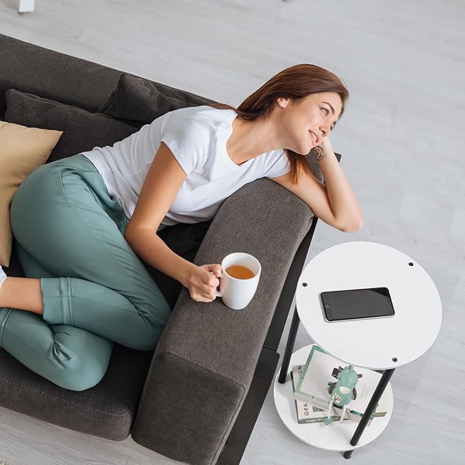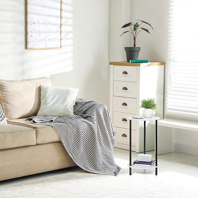 • Multi-Use:The round end table can be used as a sofa side table, bedside table, coffee table, accent table, nightstand, farmhouse end table, or plant stand. 2 tiers design can help store more essentials in your living room bedroom or office; Place coffee and vase on the tabletop and books on the shelf. Perfect for small spaces and small apartments.