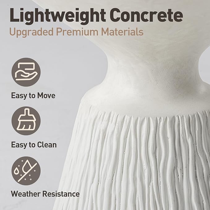 • [Perfect Quality] The accent concrete side table crafted from lightweight MgO material, waterproof and weather-resistance ensure durability for year to come as a home decoration. Overall size:15.6"D x 15.6"W x 20.9"H.The outdoor end table weight 19.8 lbs, it is convenient to remove it any place you want.
