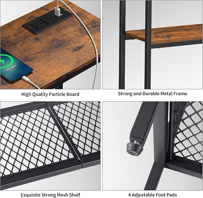 • Sturdy & Durable Construction: Crafted from high-quality particleboard and metal, the table boasts a frosted-coated metal frame for added strength. The dense iron mesh bottom shelf can support heavy loads, while adjustable feet and an anti-tip tool ensure stability on uneven surfaces.