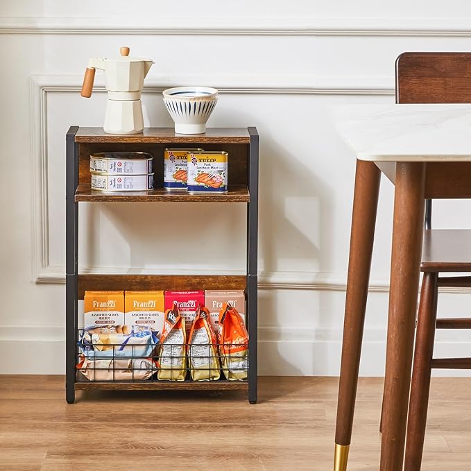 IBUYKE Narrow Side Table with Storage Shelf, 3 Tier End Table,Modern Sofa Table,Small Nightstand with Magazine Rack,Telephone Table for Small Spaces,for Living Room, Bedroom,Brown UTMZ001H