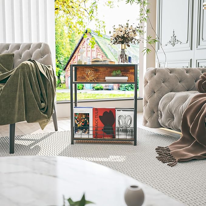 • 【Multi-functional Use】Our side table can be used as a sofa side table, bedside table, magazine rack,snack table, reading table,corner table etc., suitable for your living room, bedroom, balcony, study. It can be neatly placed in a small space, and can be used to store some snacks, coffee, food, beverages, magazines, remote controls, etc., so that the space at home can be fully utilized.