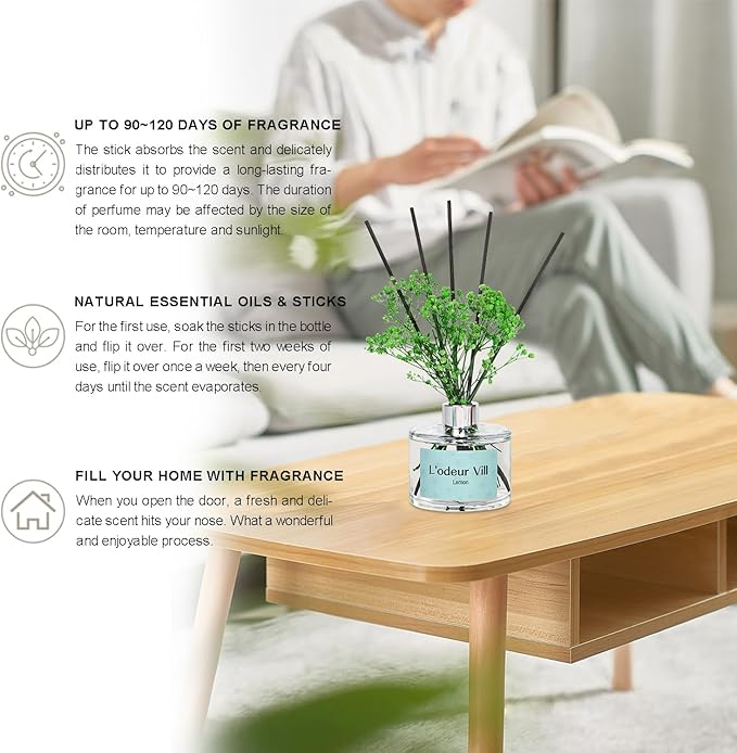 • 【Long-lasting Scent】Enjoy up to 90 days of fragrant aroma. Using our reed diffuser set is quick and convenient, with minimal maintenance. You can choose to add or remove the number of reed sticks to match your taste. When the fragrance weakens, simply turn the reed sticks upside down or replace them with new ones.