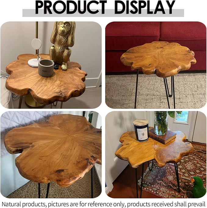 • 🌲【Sturdy and Durable】 With carbon steel legs, our live edge tables had been sanded in multiple passes and finally painted. The maximum capacity of the live edge table is approximately 50 lbs. Therefore, the live edge table is perfect for your daily life and home use.