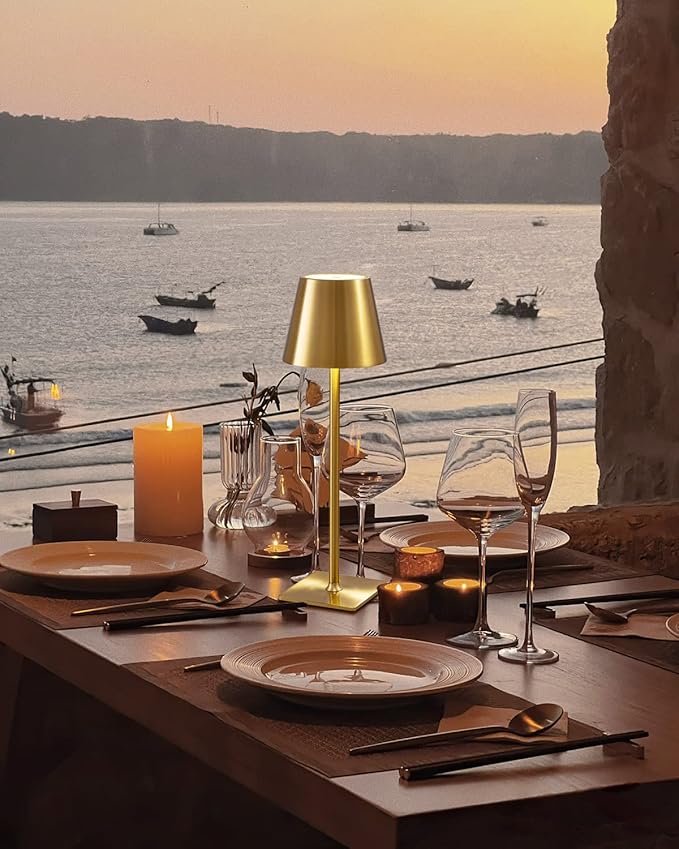 KDG 2 Pack Cordless Table Lamp,Portable LED Desk Lamp, 5000mAh Battery Operated, 3 Color Stepless Dimming Up, for Restaurant/Bedroom/Bars/Outdoor Party/Camping/Coffee Shop Night Light(Gold)
