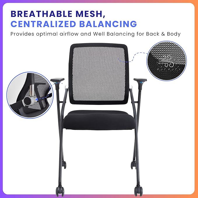 4 Pack Stackable & Foldable Conference Room Chairs with Lumbar Support, Armrest - Ergonomic Mesh Bouncing Back for Office Meeting, Conference, Reception and Training Room Chair
