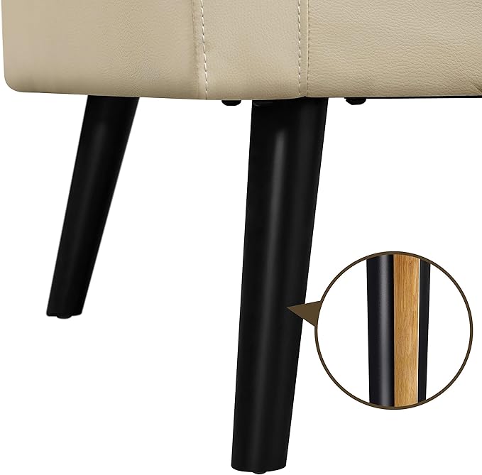 Yaheetech Mid-Century Accent Chairs, PU Leather Modern Upholstered Living Room Chair, Cozy Armchair Button Tufted Back and Wood Legs for Bedroom/Office/Cafe Beige