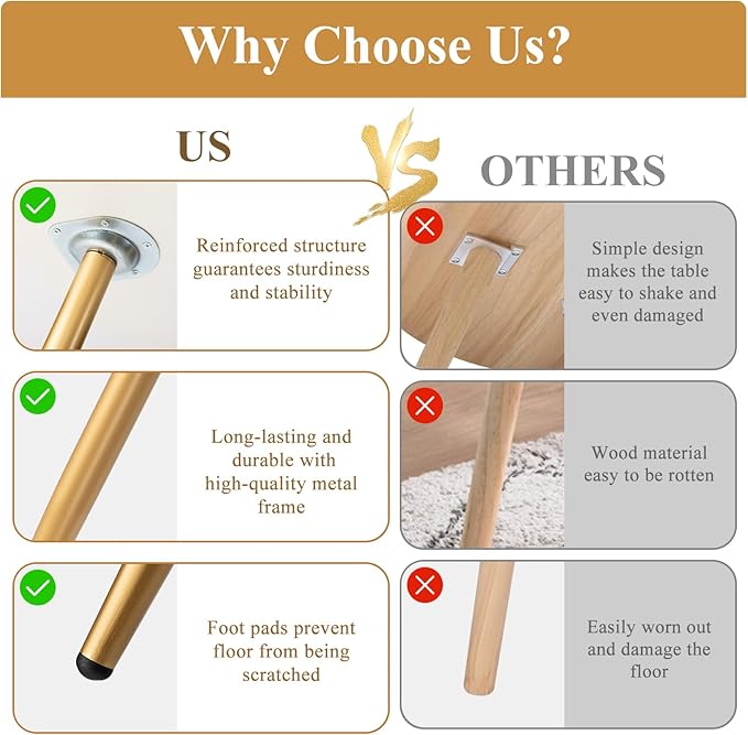 • Stable and Durable: The table top and legs are connected with reinforced metal structure, which guarantees stability and load capacity.The table is equipped with foot pads to protect the legs of the table from being worn and the floor from being scratched