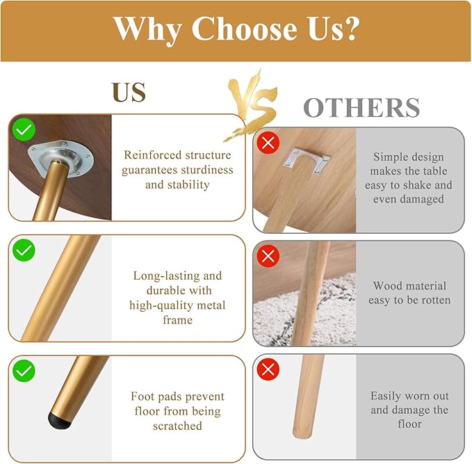 • Stable and Durable: The table top and legs are connected with reinforced metal structure, which guarantees stability and load capacity.The table is equipped with foot pads to protect the legs of the table from being worn and the floor from being scratched