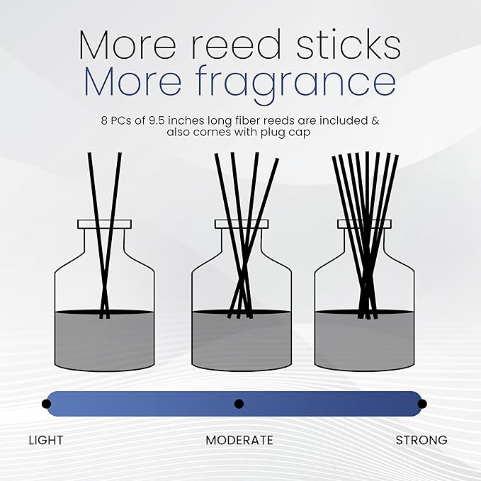 • PREMIUM QUALITY INGREDIENTS: We use only the finest ingredients in our Diffusers, utilizing high-quality essential oils to Create a rich and Long-lasting Fragrance. Each diffuser ensures your home remains pleasantly scented for extended periods, with a sophisticated scent profile.