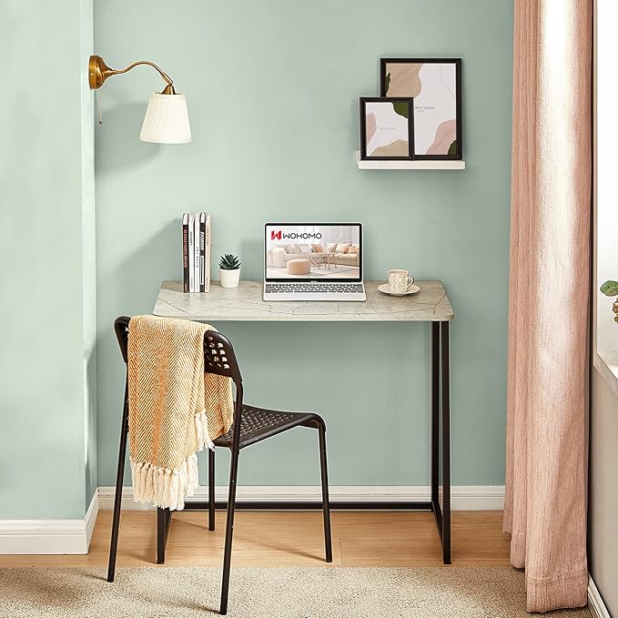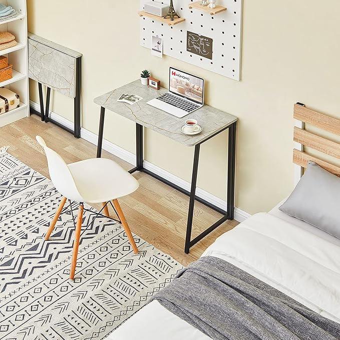 WOHOMO Folding Desk, Small Writing Desk 39.4", Space-Saving Foldable Laptop Table Writing Workstation for Home Office, Easy Assembly, Grey