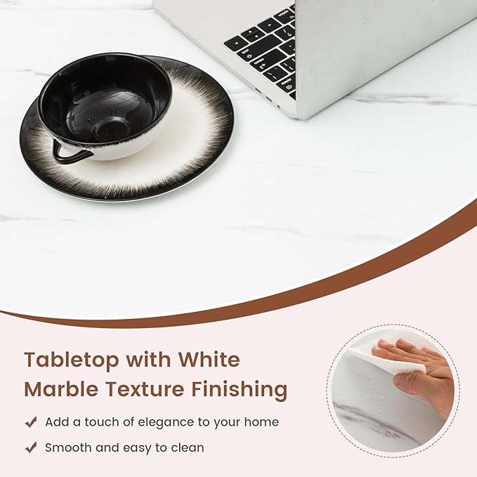• [ Elegant & Chic Appearance ]: Featuring a tabletop with white faux marble texture finishing, this 2-tier living room coffee table will add a touch of elegance to your home. Besides, the curved legs with gold finish create a stylish and luxurious feel, which can instantly brighten up your living area.