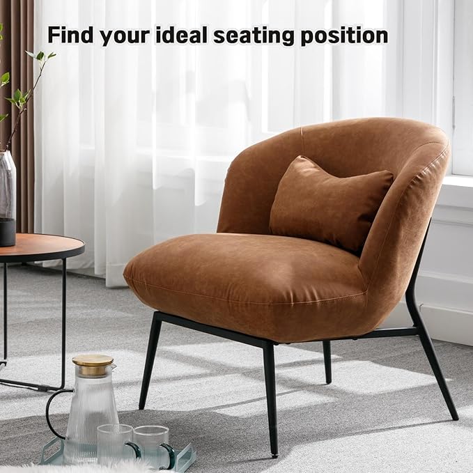 DUOMAY Modern Accent Chair, PU Upholstered Leisure Chair Single Sofa Chair Lounge Chair with Lumbar Pillow Metal Legs Slipper Chair for Living Room Bedroom Office, Brown