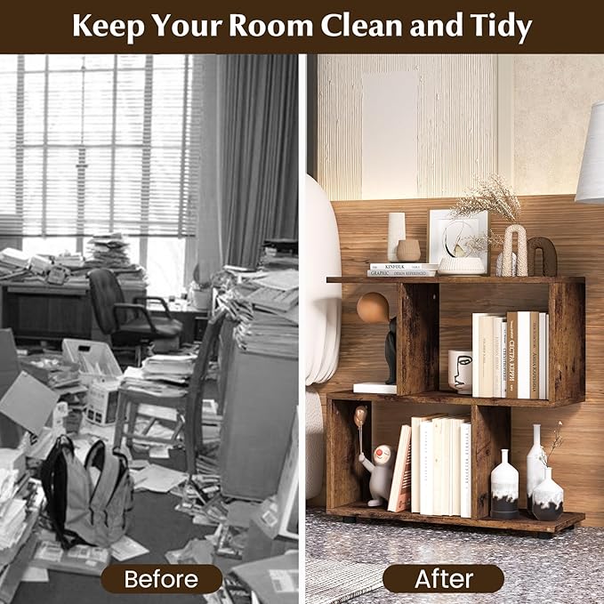 • Modern Appearance & Multifunctional Storage Shelf: With a very modern irregular geometric appearance, our 2-tier storage shelf is full of remarkably modern appeal and suitable for most decorating styles. Whether use it as a bookshelf in your study, or use as a display shelf in your living room, it will add highlights to your room.