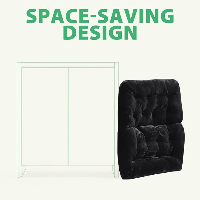 OAKHAM Comfy Chair for Adults, Soft Faux Fur Folding Lounge for Bedroom Living Room Dorm Rooms Flexible Reading Chair for Teens Kids, X-Large Foldable (Faux Fur-Black)