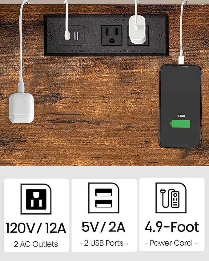 • [End Table with Charging Station] This couch side table with 2 AC outlets, 2 USB ports, and the 4.5 ft extension cord helps you charge your phone, tablet, lamp, and game console at the same time. Also, the distance between each outlet and port prevents adapters from blocking each other.