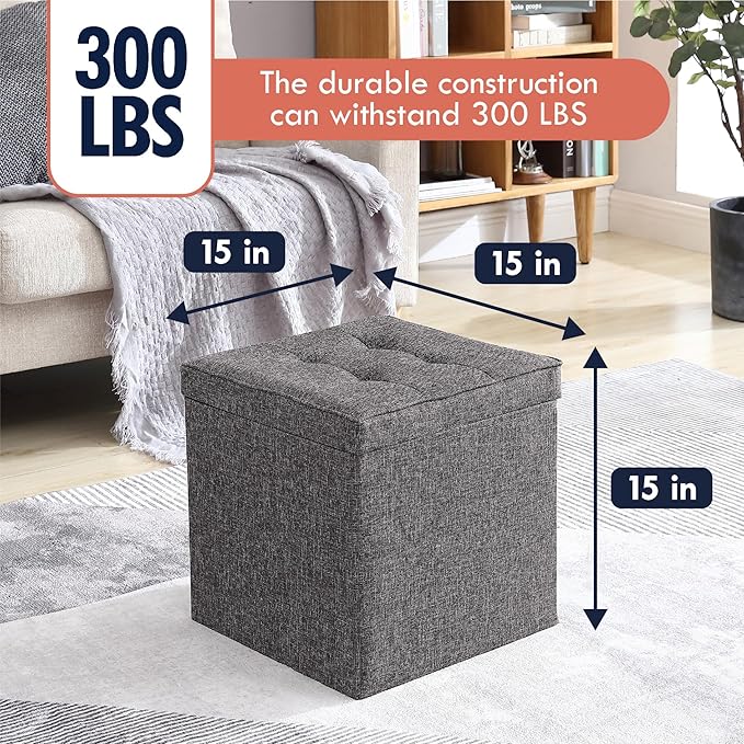 • LARGE STORAGE SPACE - Store blankets, linens, toys, and other items easily in this ottoman. It's the perfect solution to keeping your home tidy without sacrificing style. Plus, it folds down for easy storage when not in use!