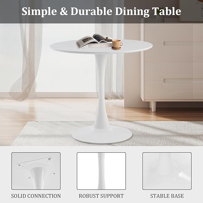 Round Dining Table,31.5”Kitchen Table for 2-4 People,MDF Table Top with Metal Pedestal Base,Tulip Design for Kitchen,Dining Room,Living Room,Leisure,White