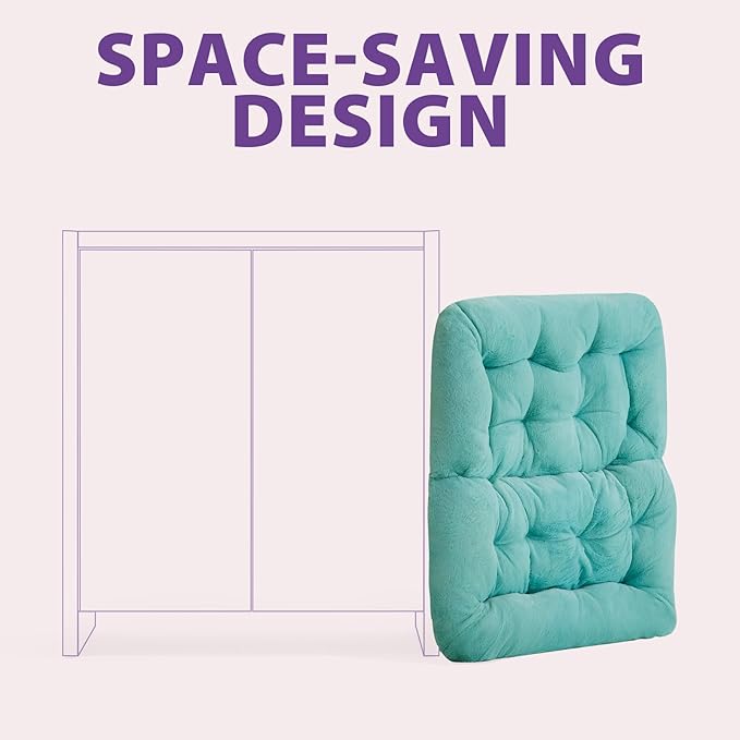 OAKHAM Comfy Chair for Adults, Soft Faux Fur Folding Lounge for Bedroom Living Room Dorm Rooms Flexible Reading Chair for Teens Kids, X-Large Foldable (Faux Fur-Mint)