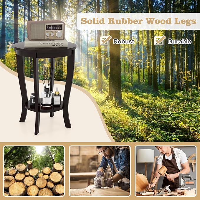 Giantex Round End Tables Set of 2, 2 Tier Side Table with Storage Shelf and Solid Wood Legs, 18" x 18" Accent Table for Corner Small Spaces, Compact Night Stand for Living Room Bedroom, Espresso