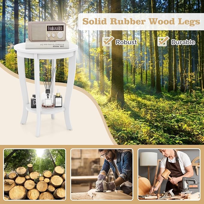 Giantex Round End Table, 2 Tier Side Table with Storage Shelf, Retro Nightstand with Solid Wood Legs, 18" x 18" Accent Table for Corner Small Spaces, Tall Night Stand for Living Room Bedroom, White