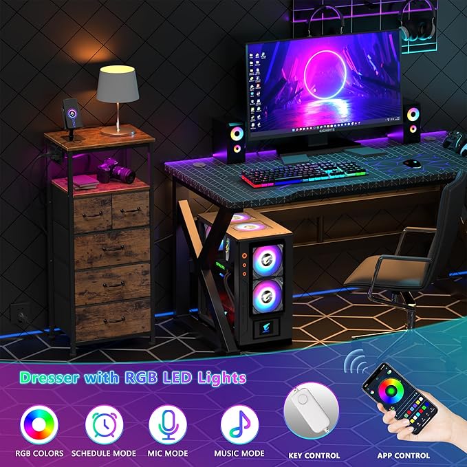 • 【Smart RGB LED】The storage organizer unit is equipped with RGB light strip, which can be controlled by button or mobile app. There are more than 60,000 colors of LED lights to choose from. There are also modes such as Style Mode, Music Mode, Microphone Mode and Timer Function for you to explore! You can freely set the brightness, color, mode that best suits your mood and environment, making the led dresser a great addition to your bedroom.
