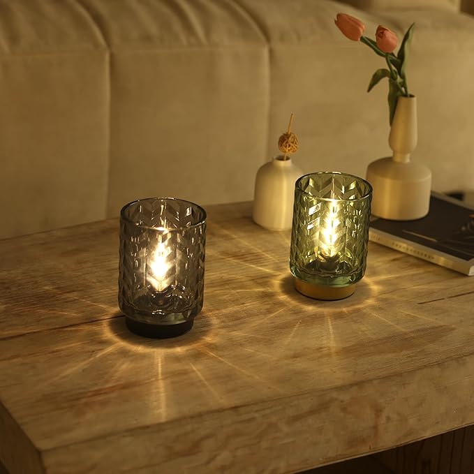 • ✨𝑽𝒊𝒏𝒕𝒂𝒈𝒆-𝑰𝒏𝒔𝒑𝒊𝒓𝒆𝒅 𝑹𝒊𝒃𝒃𝒆𝒅 𝑮𝒍𝒂𝒔𝒔 𝑫𝒆𝒔𝒊𝒈𝒏 – 𝑨 𝑺𝒕𝒚𝒍𝒊𝒔𝒉 𝑨𝒄𝒄𝒆𝒏𝒕 𝑳𝒂𝒎𝒑 𝒇𝒐𝒓 𝑪𝒐𝒛𝒚 𝑺𝒑𝒂𝒄𝒆𝒔: Add timeless character to your home with this decorative ribbed glass table lamp in a rich emerald green hue. The embossed glass texture reflects light beautifully when illuminated, creating elegant highlights and a soft diffusion. Its compact size and cordless design make it the perfect accent for coffee tables, nightstands, entryway consoles, shelves, or fireplaces. Whether your style leans vintage, boho, cottagecore, or art deco, this battery lamp blends effortlessly into your décor.