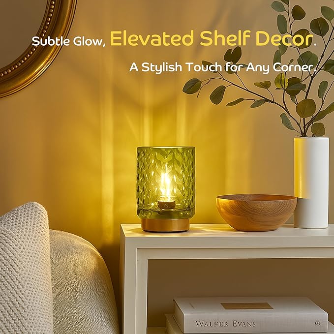 • ✨𝑽𝒊𝒏𝒕𝒂𝒈𝒆-𝑰𝒏𝒔𝒑𝒊𝒓𝒆𝒅 𝑹𝒊𝒃𝒃𝒆𝒅 𝑮𝒍𝒂𝒔𝒔 𝑫𝒆𝒔𝒊𝒈𝒏 – 𝑨 𝑺𝒕𝒚𝒍𝒊𝒔𝒉 𝑨𝒄𝒄𝒆𝒏𝒕 𝑳𝒂𝒎𝒑 𝒇𝒐𝒓 𝑪𝒐𝒛𝒚 𝑺𝒑𝒂𝒄𝒆𝒔: Add timeless character to your home with this decorative ribbed glass table lamp in a rich emerald green hue. The embossed glass texture reflects light beautifully when illuminated, creating elegant highlights and a soft diffusion. Its compact size and cordless design make it the perfect accent for coffee tables, nightstands, entryway consoles, shelves, or fireplaces. Whether your style leans vintage, boho, cottagecore, or art deco, this battery lamp blends effortlessly into your décor.