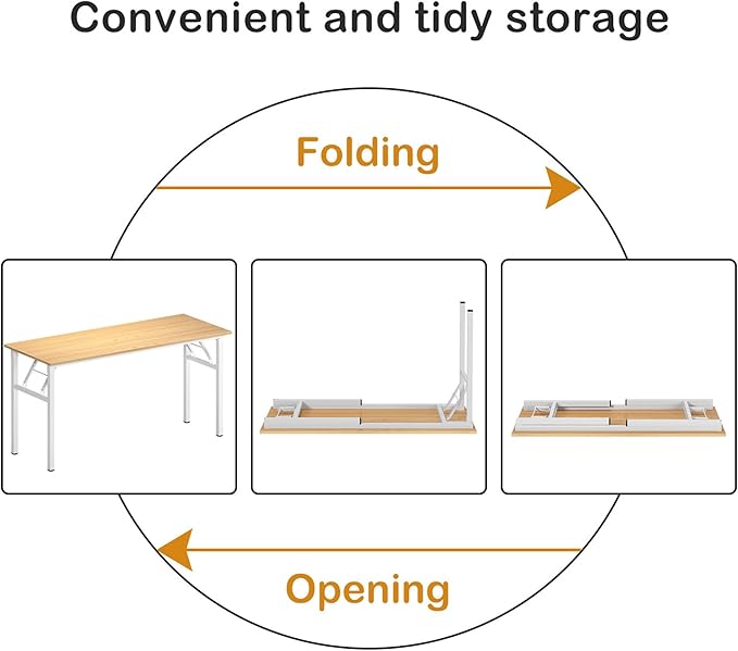 • NO ASSEMBLE - When you receive the large black foldable office desk, you can use it directly without worrying about the assembly problem.And with adjustable leg pads design, legs can be adjusted 1-2 cm in length, even allowing stability under an uneven floor.Important is the thickness of the folding desk is only 3-1/4 inches, which is convenient for storage.