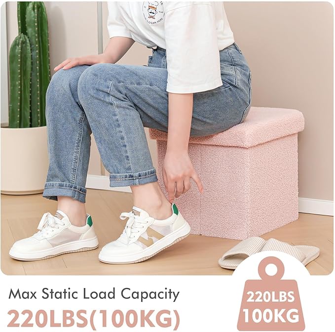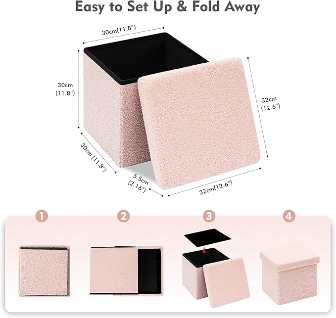 B FSOBEIIALEO Small Storage Ottoman Cube Sherpa Ottomans Foot Rest, Foldable Boucle Ottoman, Faux Teddy Fur, Pink 12.6"x12.6"x12.6"