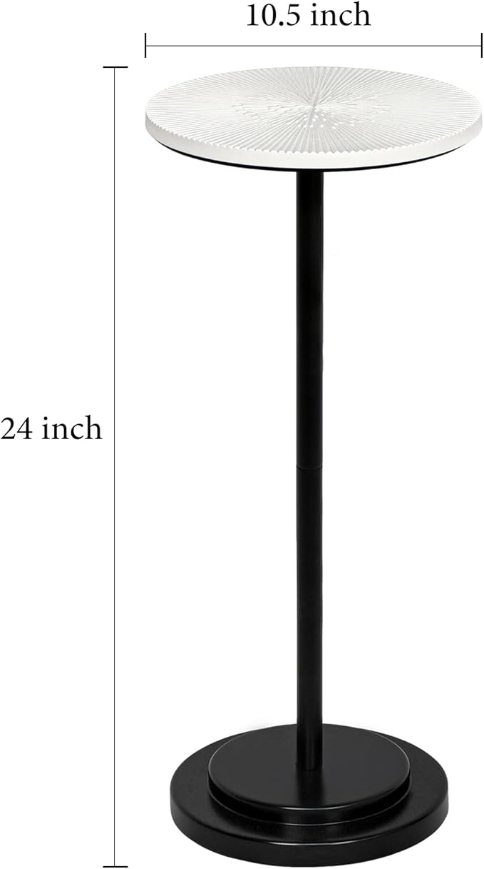 Drink Table, Carved Table Top Martini Table, Small Side Table, Weighted Base Pedestal Table for Living Room, Bedroom, Modern, White and Black