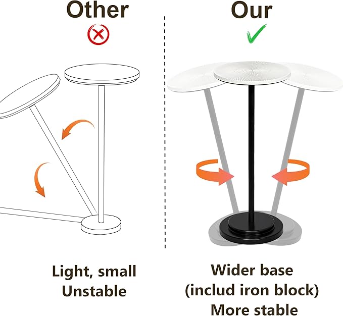 • 【Material】The top of this table is coated with pu paint, which is waterproof, scratch-resistant and easy to clean. Thickened metal connecting tube and weighted pedestal base make it more stable. Beverage tables come with velvet pads to protect your floors.