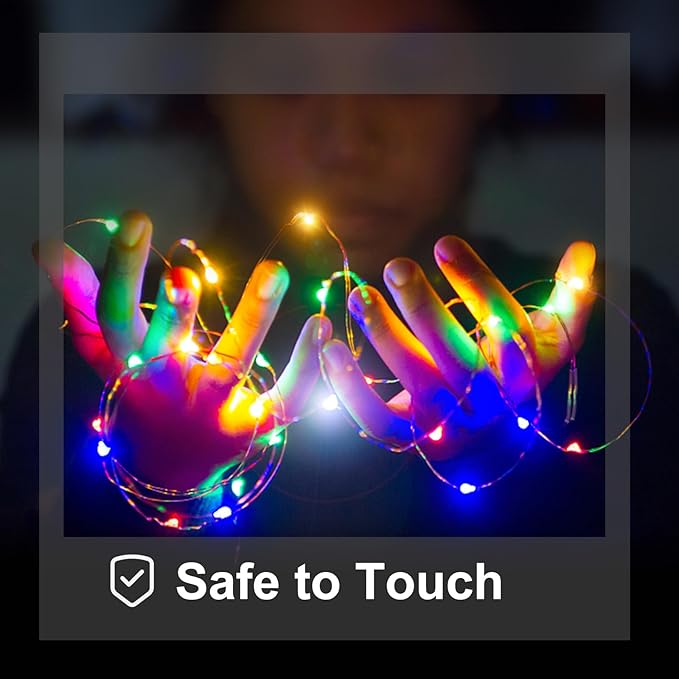 • ✨Waterproof &Touch Safe : Our fairy string lights is IP65 Waterproof(battery box except). Can be submerged in water, safe to use indoors and outdoors without any worry of moisture or weather damage or short circuit. Have low battery power consumption, will not get hot when used for a long time, and are safe to touch. The warm lighting is bright but not dazzling, and can be used as a nightlight to create a pleasant and romantic feeling.