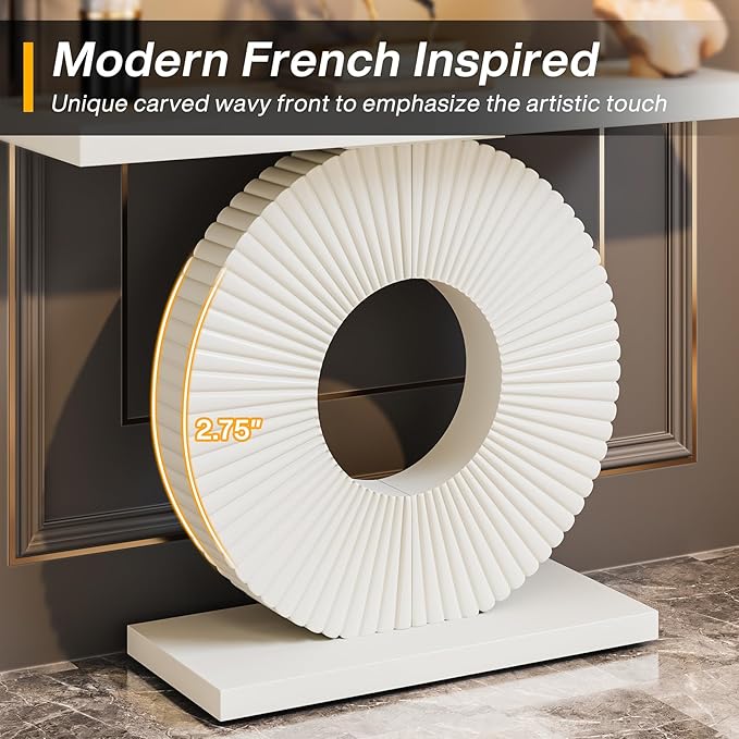 • ✔【ACCENT TABLE WITH ENDLESS VERSATILITY】 Perfect for your living room or entryway with this white console table, take it behind your sofa to tuck away magazines, lamp, flower arrangement and framed photos, or place it in your entryway right by the front door to proudly display your favorite collectibles. Allow this French country sofa table to revolutionize your home decor today!
