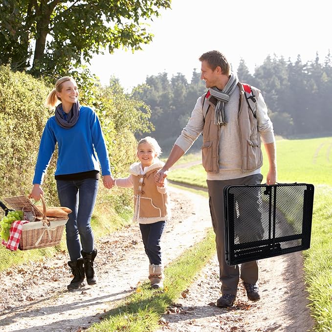 • DURABLE USE Combined with the unique coated mesh table design, this metal table can avoid water accumulation and prevents rusting. The quick wipe material is easy to clean so you don't have to worry about stains or spills. The metal mesh table top is not afraid of heat and equipped with four hooks. You can set up a barbecue spending happy time with friends or family.