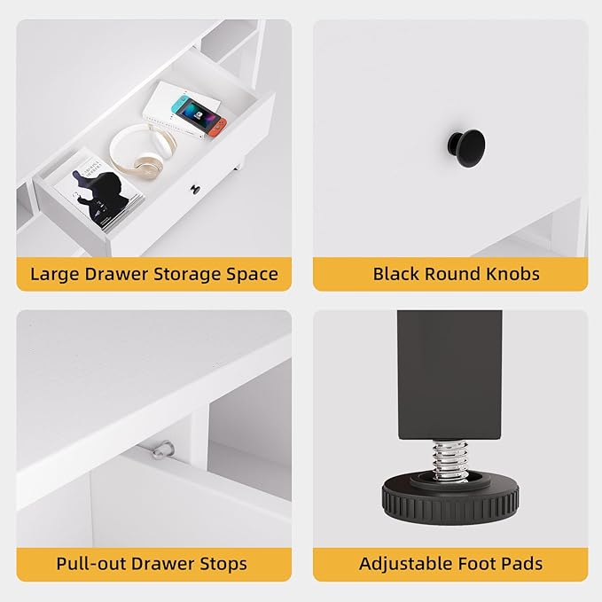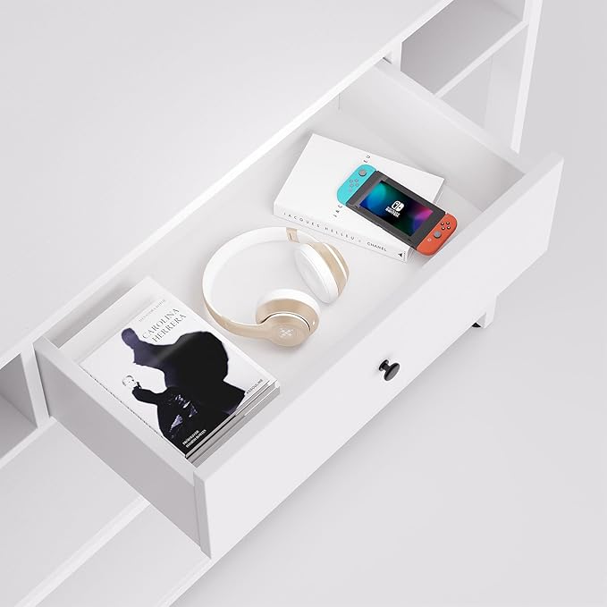 Mexin 39 Inch Console Sofa Table with Drawer, Industrial Entryway Table with Storage Shelves, Storage Organizer for Hallway Living Room Couch Foyer Kitchen Counter, White
