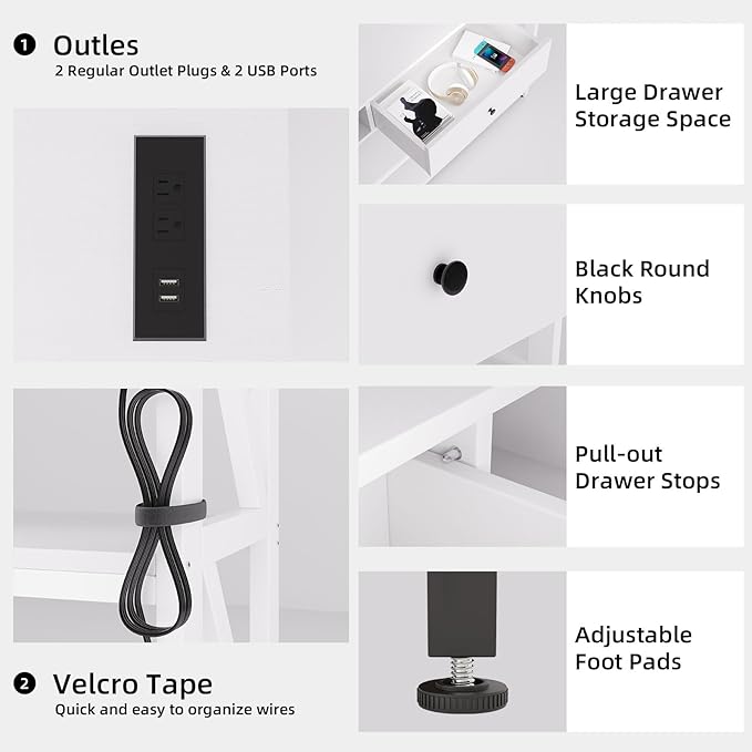 Mexin 39 Inch Console Table with 2 Outlet and 2 USB Ports, Entryway Table with Drawer and Storage Shelves, Narrow Sofa Table for Living Room and Hallway, White