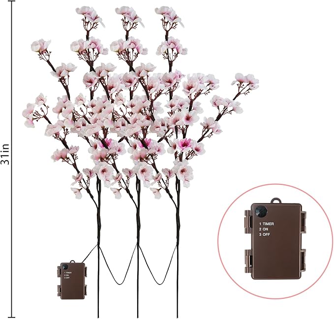 • [Battery Powered & Timer Function]: Enjoy the convenience of Uieke lighted branches without worrying about cords or finding an electrical outlet! These are battery-operated, needing just 3 AA batteries (not included), so you can set them up wherever you like. Plus, they have a built-in timer function that automatically turns them on for 6 hours and then off for 18 hours. Set it and forget it – they'll light up your space effortlessly!