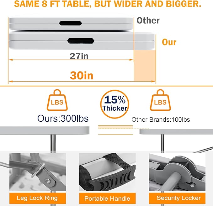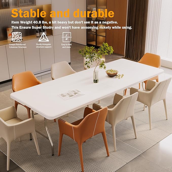 • ✅【Portable Fold in half with handdle carrying.】Ideal for parties, gatherings and when you're out and about, these 8ft White Folding Tables are light, durable and easy to carry. At 8ft long, they are ideal for car boots, camping and more. Stores away easily when done.