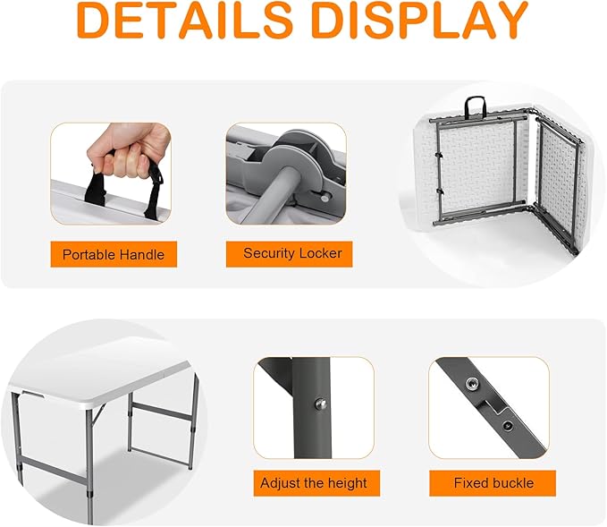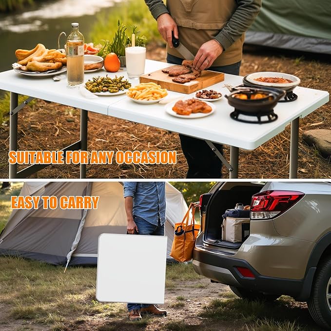 • ✅【Portable Fold in half with handdle carrying】Ideal for parties, gatherings and when you're out and about, these 4ft White Folding Tables are light, durable and easy to carry. At 4ft long, they are ideal for car boots, camping and more. Stores away easily when done.