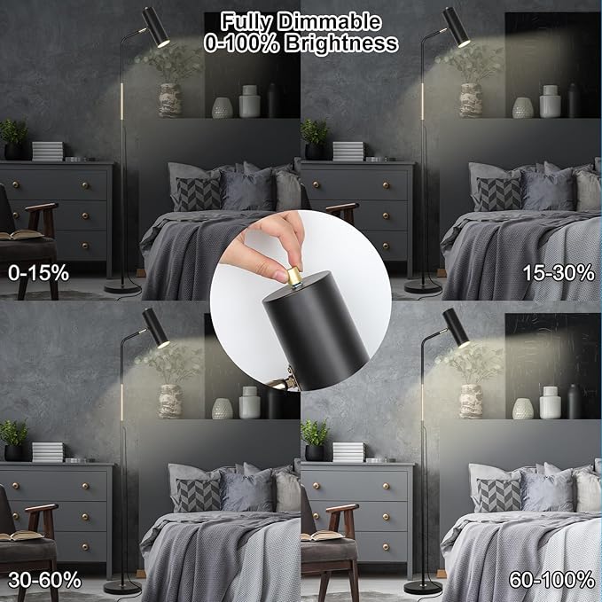 • FLOOR LAMP with STEPLESS DIMMING FUNCTION- This floor lamp features a state-of-the-art dimming capability, allowing you to adjust brightness seamlessly from 0% to 100%. Perfect for a myriad of occasions, this metal floor lamp effortlessly caters to different lighting needs. Whether you're creating a cozy atmosphere for a relaxing evening or need focused brightness for work or reading, our floor lamp provides the ideal lighting solution.